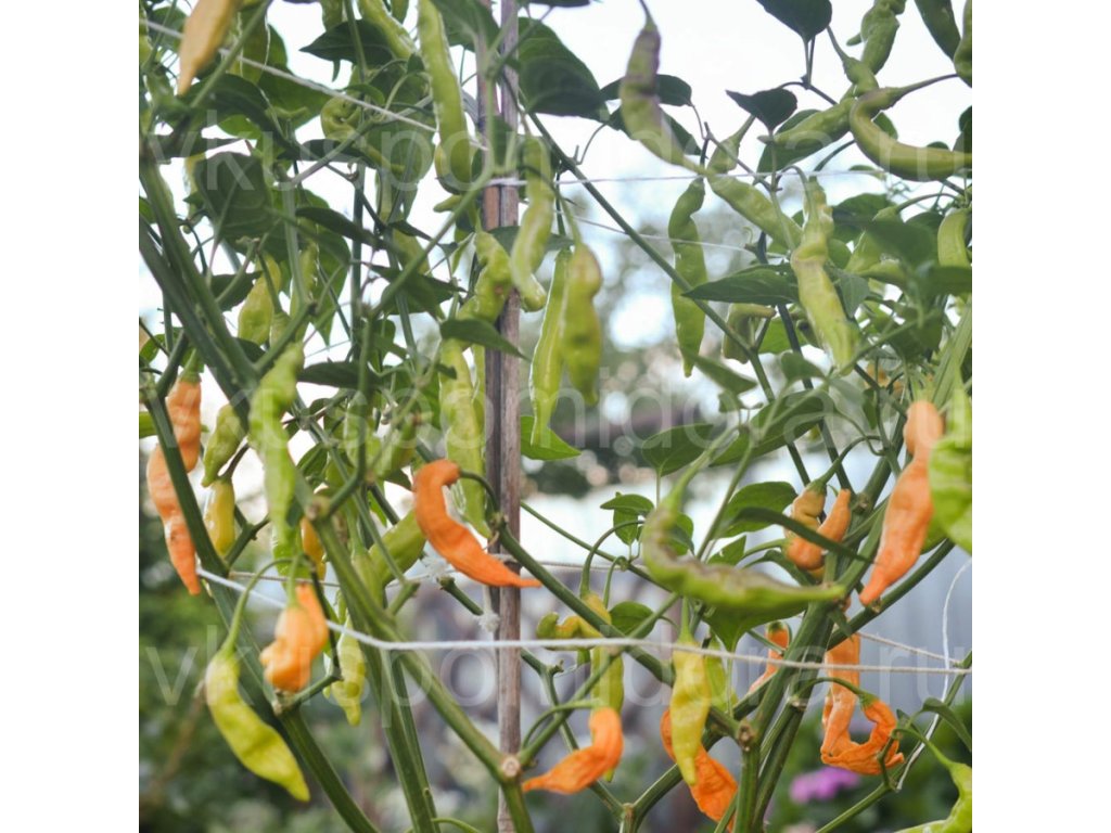 Broskvově zbarvená odrůda se sladkou ovocnou chutí a příjemným „hřejivým“ pálem. Skvělá do omáček, na koření i jen tak na ochutnání. Balení obsahuje 10 semen.