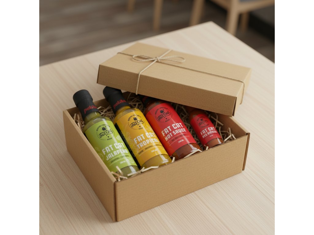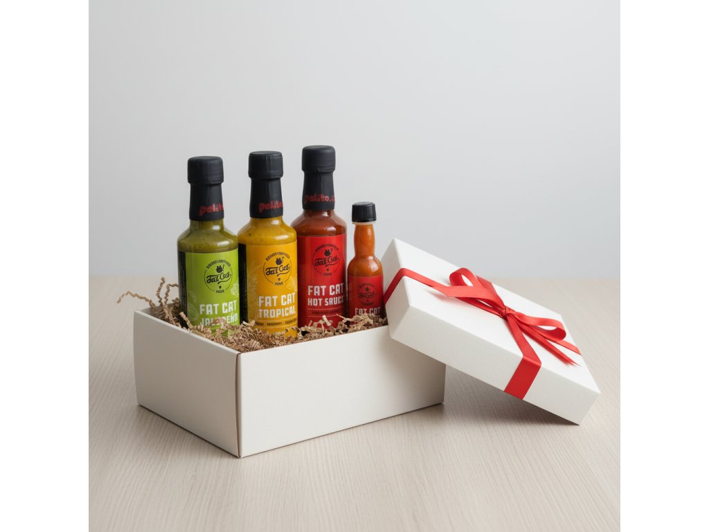 Kompletní kolekce legendárních Fat Cat omáček v jednom balíčku. Projděte si celou škálu od tropické sladkosti až po peklo v láhvi!