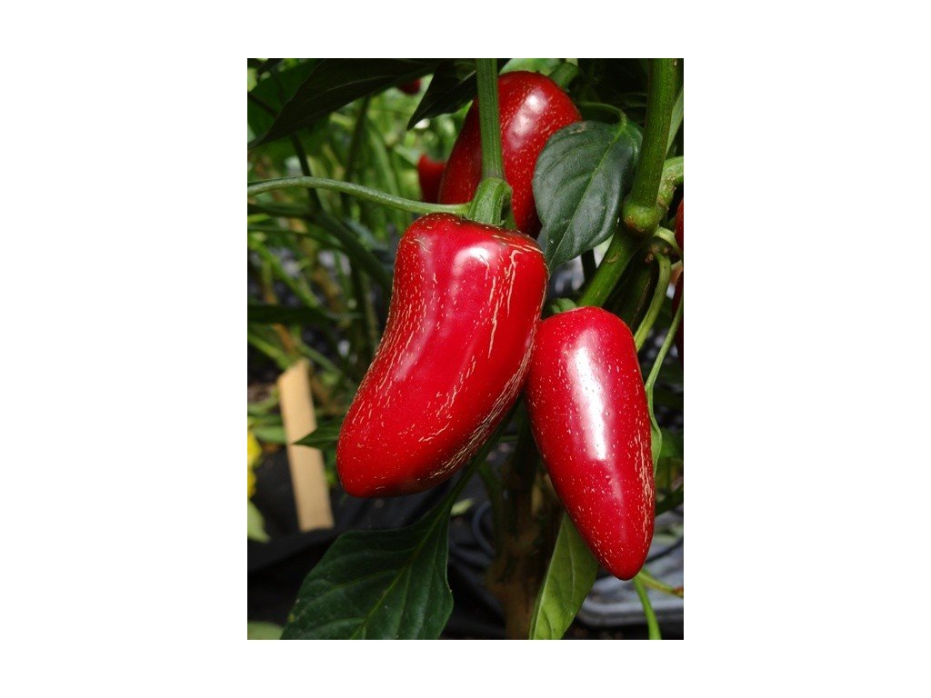 Plody: silnostěnné jalapeño, protáhlé, vhodné i na plnění.