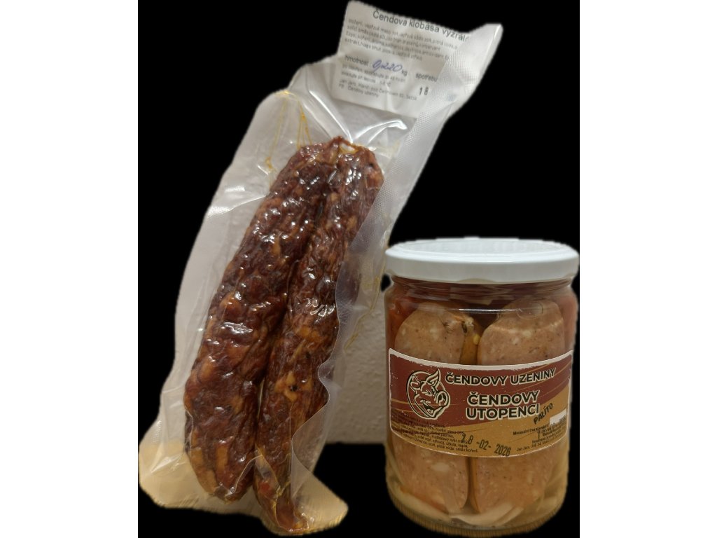 - Čendovy klobásky: 2 ks / cca 200 g (ve všech variantách)