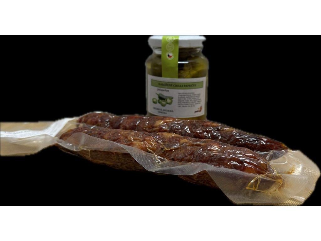 - Silvestrovský Start: Klobásky + Jalapeños (200 ml) Obsahuje:
